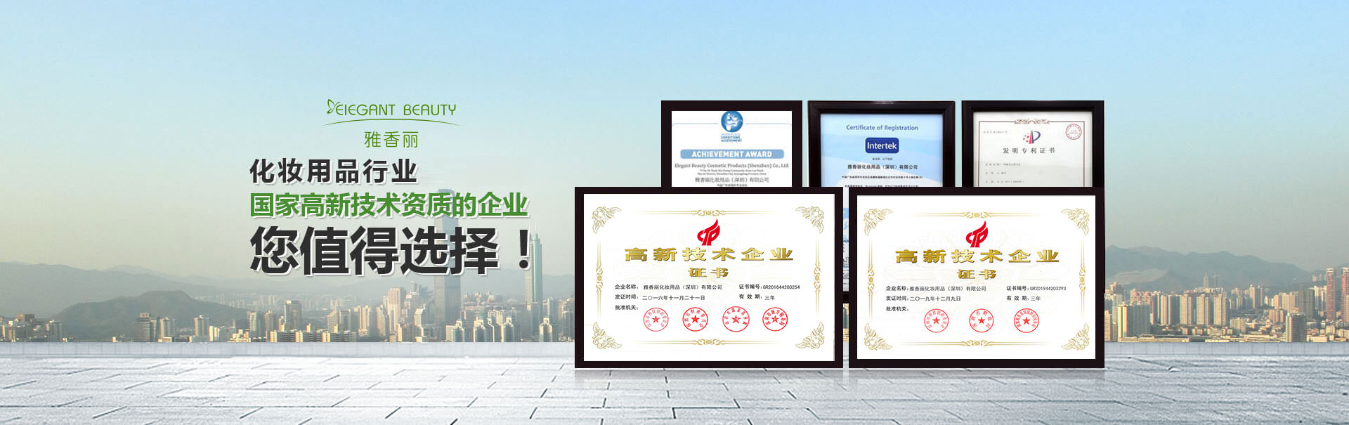占地面積一萬余平方米,專業(yè)技術(shù)員工300余人,雅香麗憑借著在行業(yè)內(nèi)的專業(yè)化、精細化、特色化、新穎化、可持續(xù)化,榮獲國家"高新技術(shù)企業(yè)"、"深圳市專精特新中小企業(yè)"等重量級認(rèn)證。